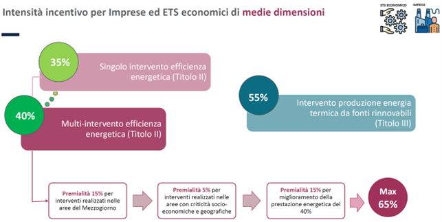 Se il Soggetto Ammesso agli incentivi è un’impresa, vi sono disposizioni specifiche che devono essere rispettate per accedere al Conto Termico 3.0 (Titolo V del DM 7 agosto 2025).
