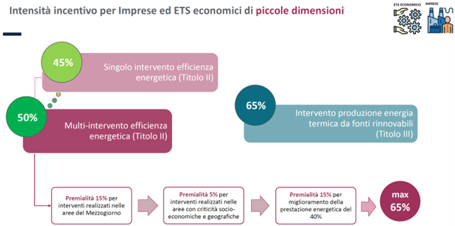 Nel Conto termico 3.0 gli ETS ECONOMICI sono trattati al pari delle Imprese, eccetto per quanto riguarda: