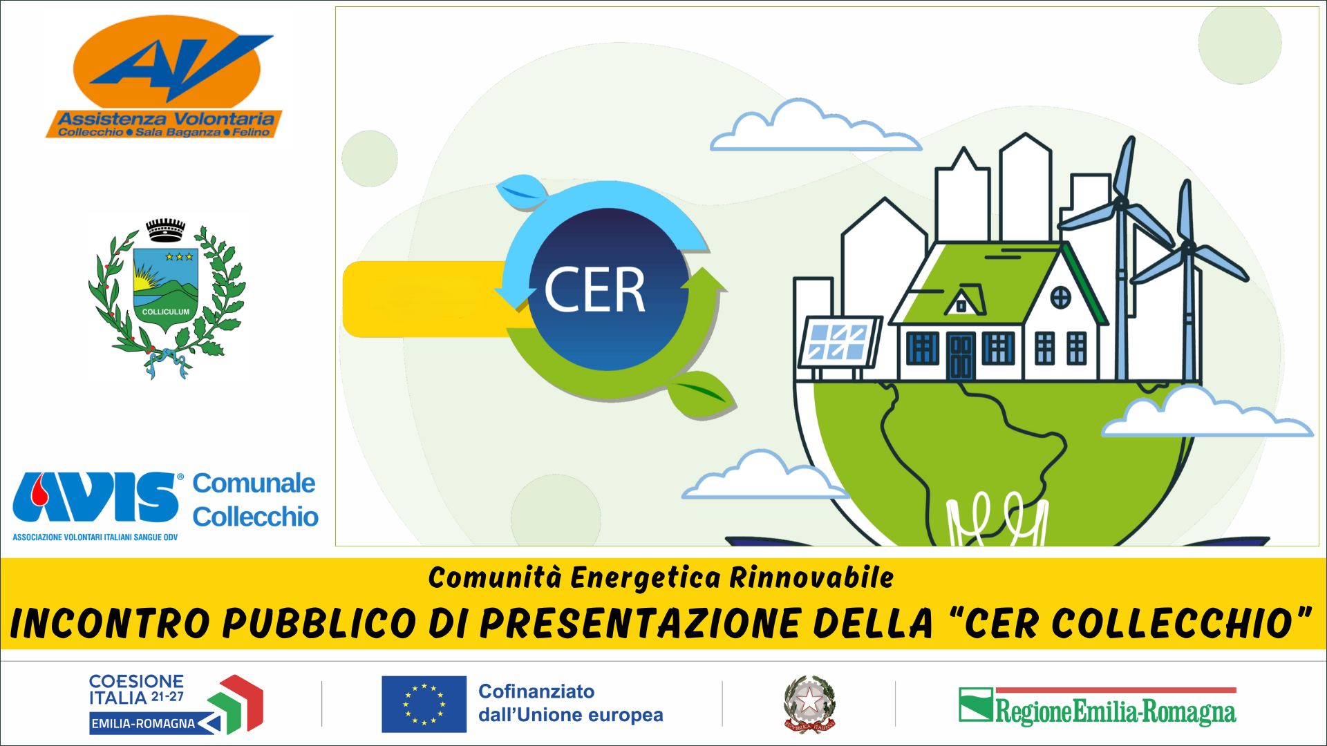L’Associazione Comunità Energetica Rinnovabile “CER Collecchio” è stata costituita dal Comune di Collecchio insieme ad Assistenza Volontaria Collecchio-Felino-Sala Baganza con l’obiettivo di promuovere la produzione, l’autoconsumo e la condivisione di energia elettrica da fonti rinnovabili.