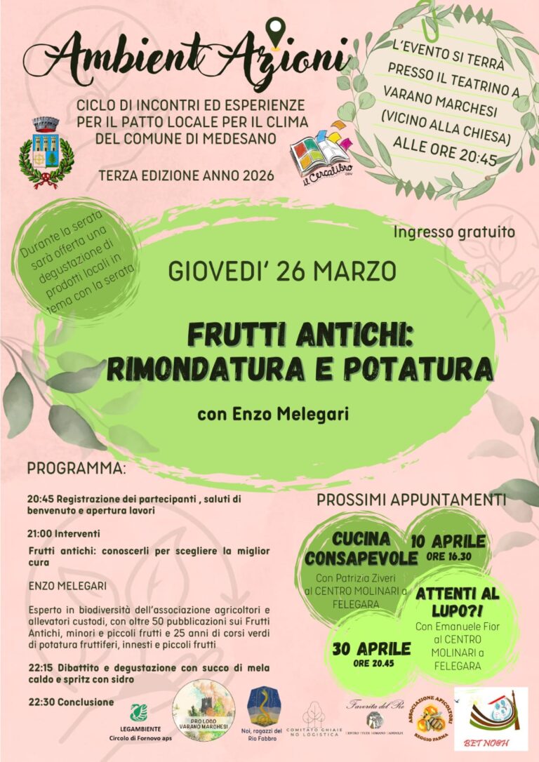 MARTEDÌ 7 MAGGIO alle ore 20.45: “Il suolo tra cementificazione e serbatoio di biodiversità”