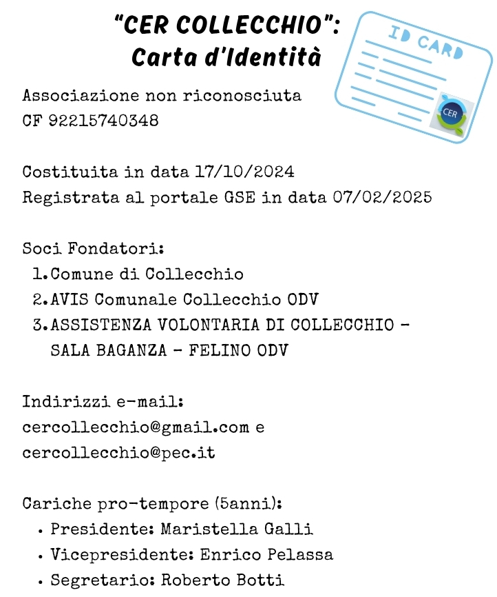 La CER COLLECCHIO è stata, inoltre, registrata al portale GSE in data 07 febbraio 2025.