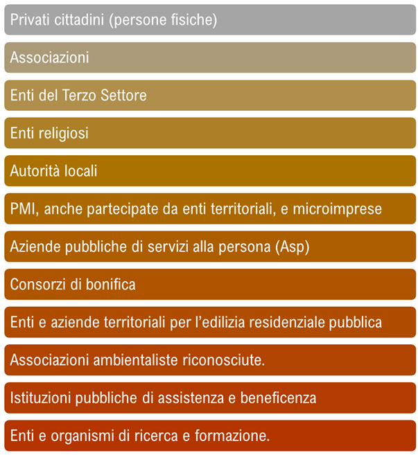 Si ricorda che, per legge, possono partecipare alle Comunità Energetiche: